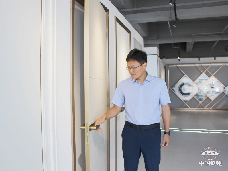 龔曉剛在公司產(chǎn)品研發(fā)基地產(chǎn)品庫對比選擇戶內(nèi)門材質(zhì)工藝(中鐵地產(chǎn)西南公司 供圖)