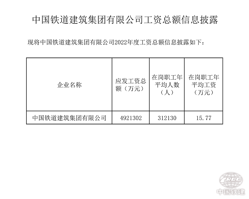 中國鐵道建筑集團(tuán)有限公司工資總額信息披露