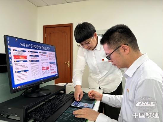 黨員職工運用“指尖課堂”學(xué)習(xí)黨規(guī)黨紀(jì)(中鐵建設(shè)華北公司 供圖)